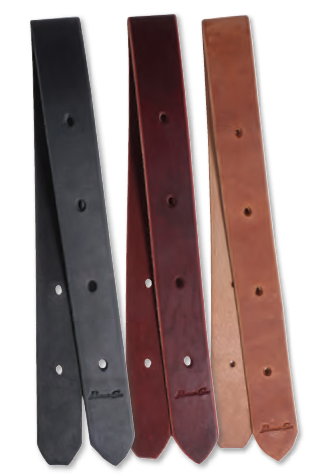 1 3/4” x 5 1/2’ long, top-quality latigo or Hermann Oak harness leather with beveled edges.