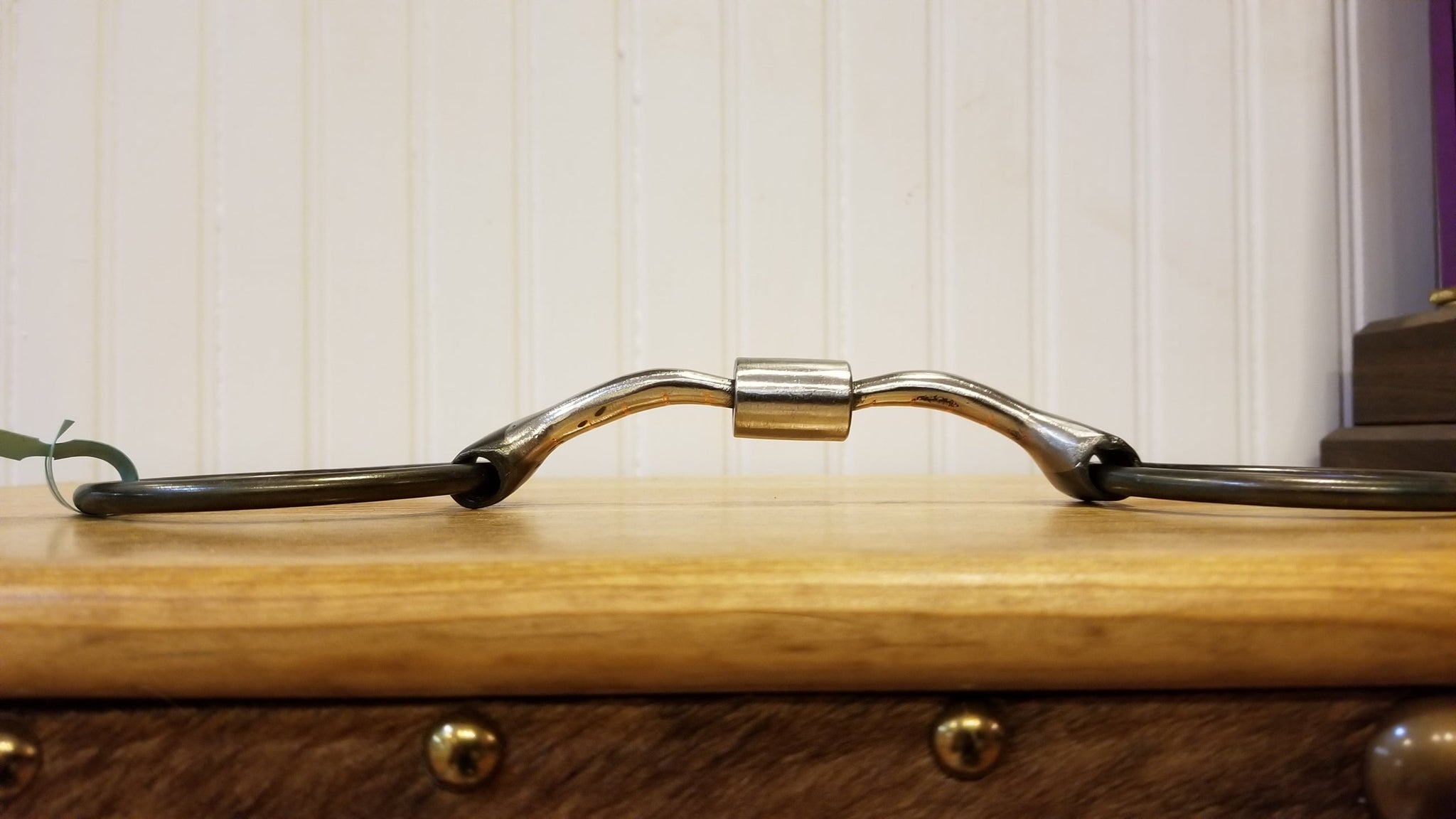 Two bar pieces of the mouthpieces are connected by a barrel type hinge in the center. This mouthpiece has a slight amount of break in the center with both bar pieces functioning independently, allowing lift on one side at a time. This mouthpiece also applies tongue pressure and has copper inlaid bars. Medium to strong severity.