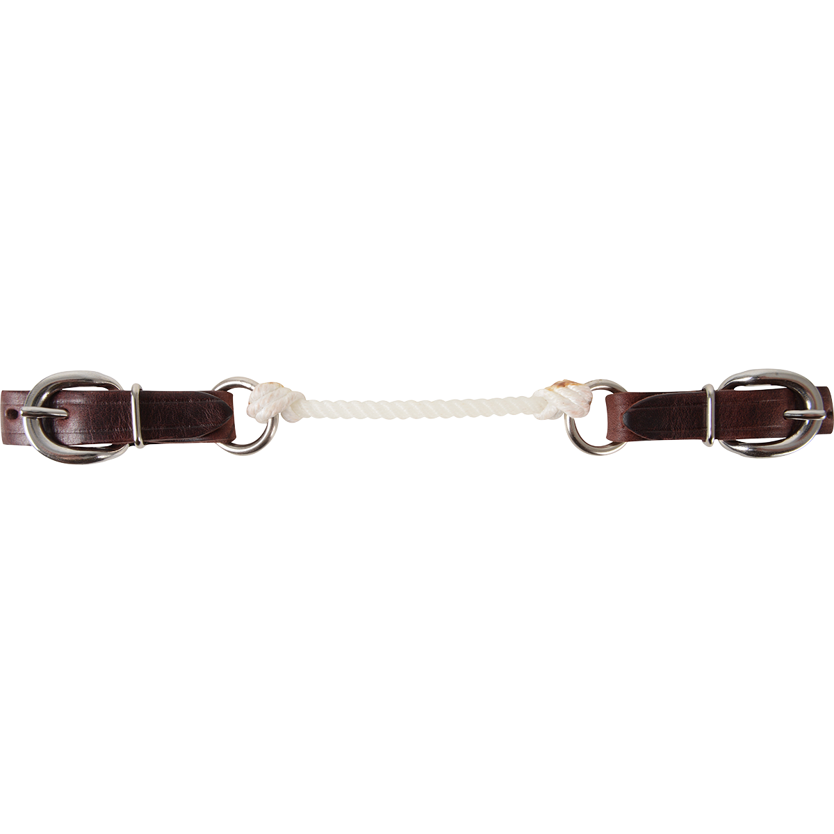 Rope curb strap; harness leather or latigo leather.