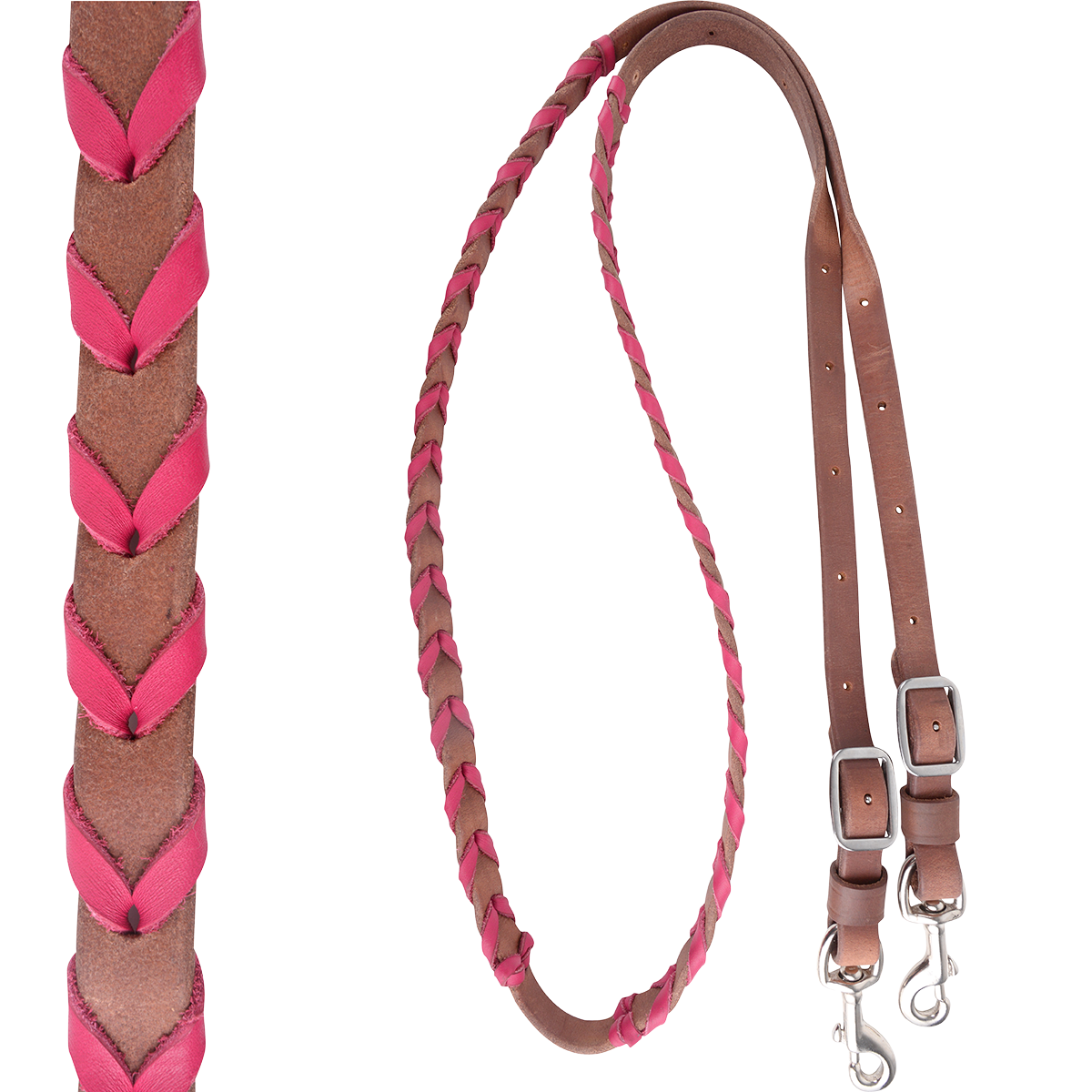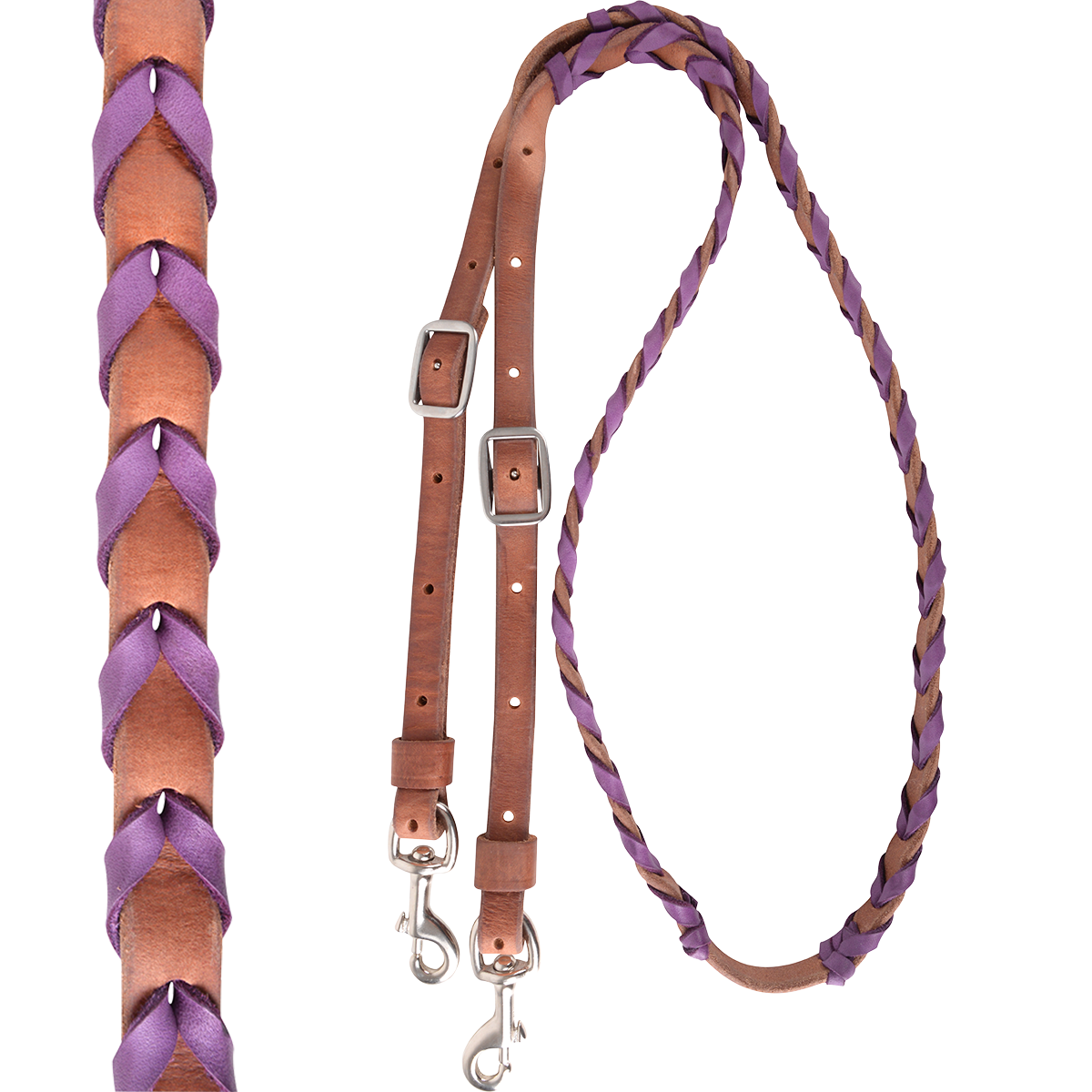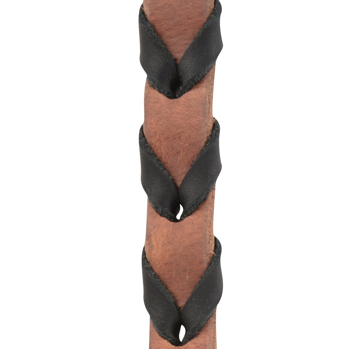 Barrel Rein, 5 plait with latigo lacing. Harness leather.