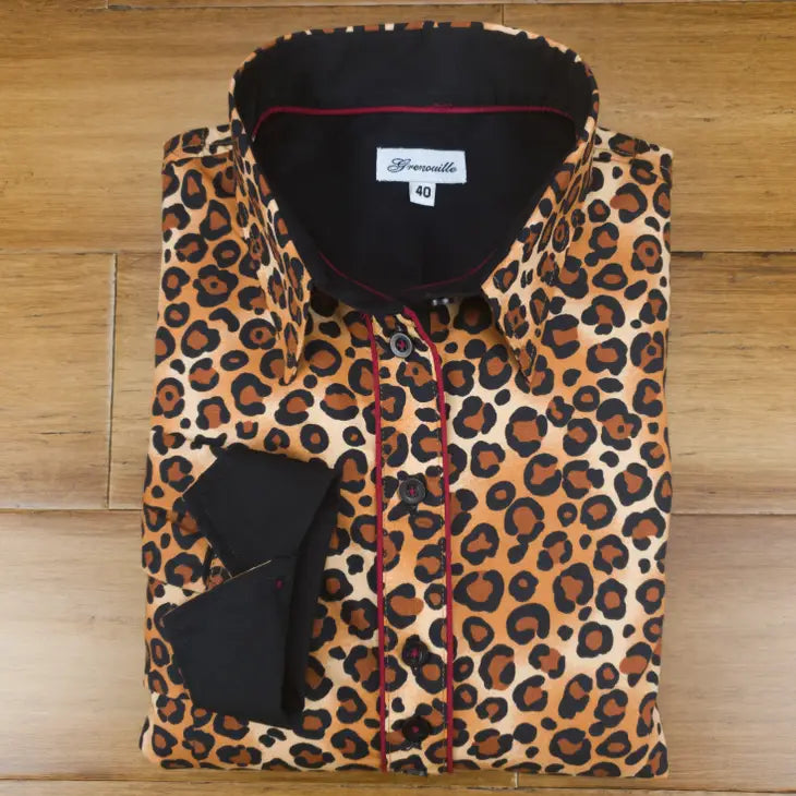 Grenouille Long Sleeve Tan Leopard Print Shaped Fit Shirt