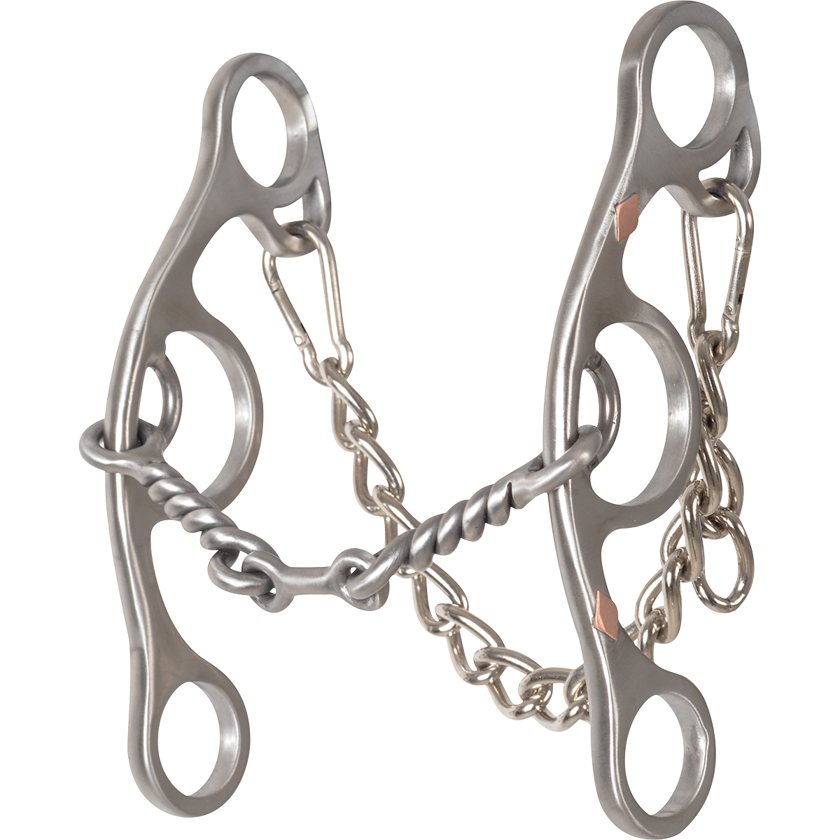 Use this diamond short-shank twisted wire dogbone bit when starting barrel training or with horses that have a sensitive mouth and don't need as much bit.