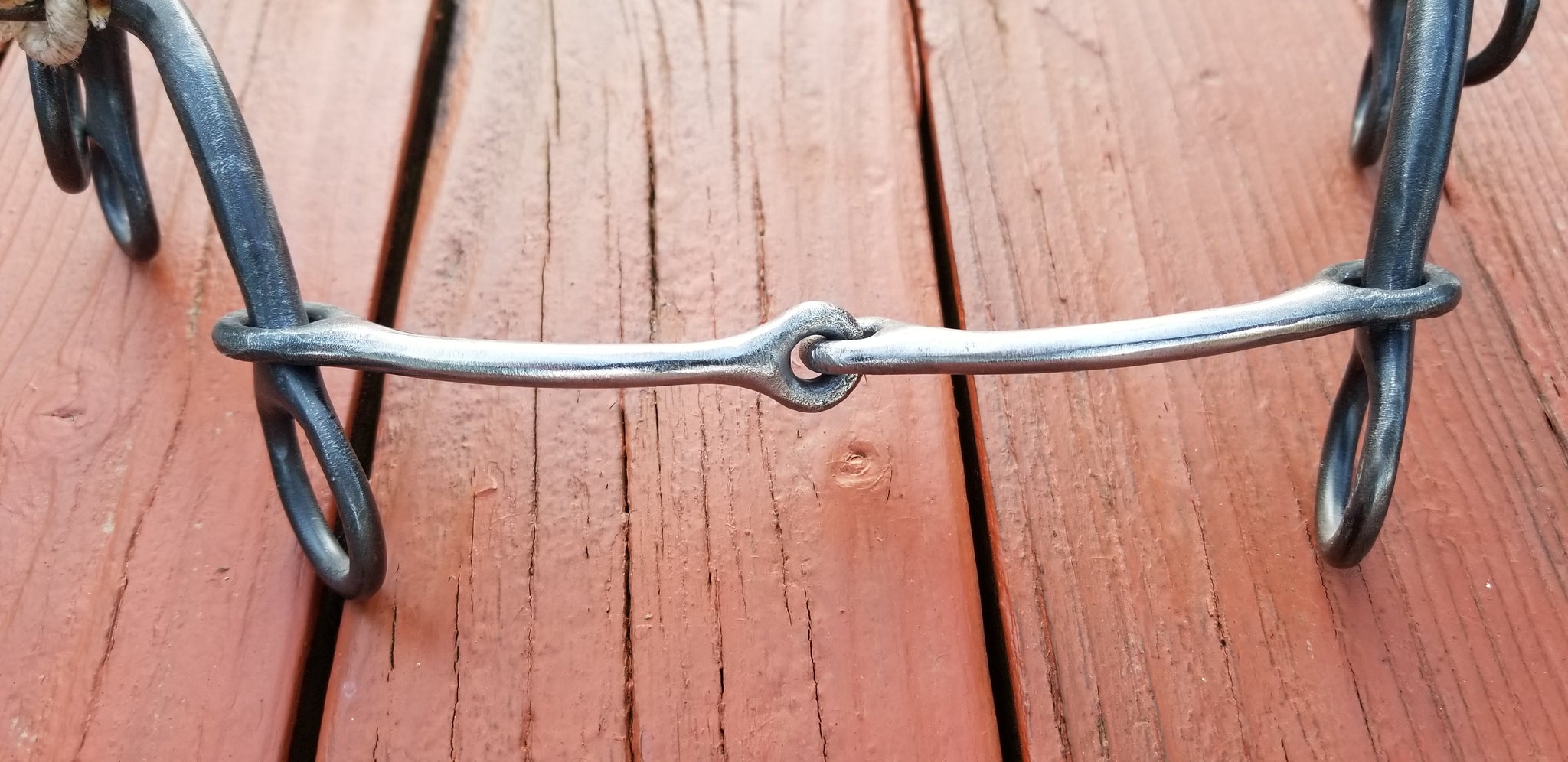 Two piece 1/4" copper in-layed mouth with mullen relief. This mouth piece carries a lot of collection for a two piece mouth, due to the small diameter of the bar piece. Medium to strong severity.
